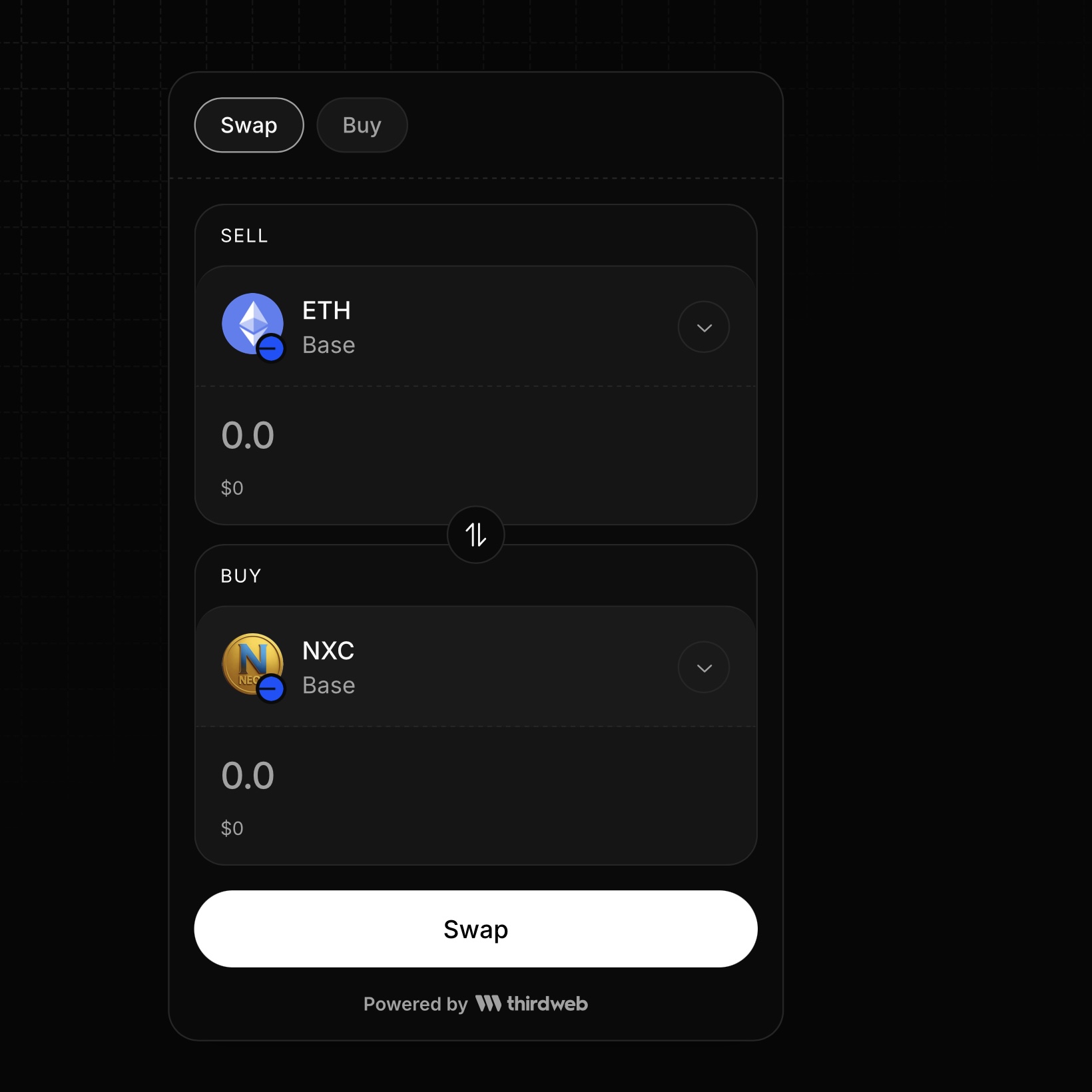 Step A — Swap ETH → NXC on Base (Thirdweb)